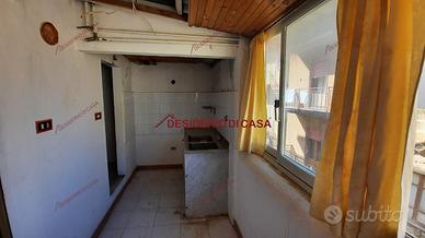 L'immobile, da ristrutturare, presenta esposizione esterna con un balcone ed è composto al piano terra da una cucina semi abitabile ed ai piani superiori da soggiorno, salotto, camera da letto, cameretta, cucinotto, ripostiglio e due bagni (uno con doccia, uno di servizio).