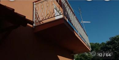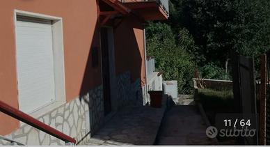 Casa indipendente su 2 piani più cantina doppia. Giardino terrazza balcone. Non arredato, doppio ingresso con progetto antisismico certificato (casa in cemento armato non vecchia costruzione in pietra e sassi). Ha 1 Piano d'ingresso salone e cucina ampia con terrazzo ampio, in cucina e in salone c'è il camino. Dal salone una scala in legno porta alle due camere, 1 camera ampia con balcone doppio, 1 con con finestra e accesso indipendente esterno, poi sul piano c'è 1 bagno con finestra. Poi una cantina seminterrata in parte e in parte a vista, magazzino per legna, attrezzi e dispensa. Giardino recintato. di 200 mq per il vostro orto. Termosifoni in tutta la casa, caldaia nuova, bombola gas esterna, infissi e porte in legno massello. Il cancello della cantina va cambiato e anche i mobili. Impianto luce a norma. Possibilità di acquistare un terreno adiacente per creare dei parcheggi per auto e macchinari agricoli. Possibilità di acquistare 1 ettaro di terreno adiacente.