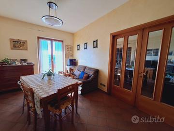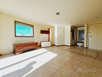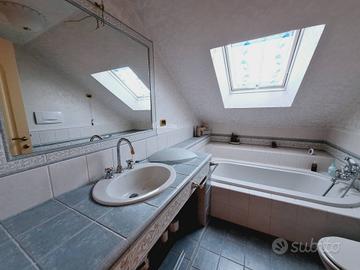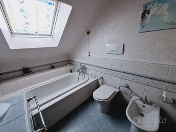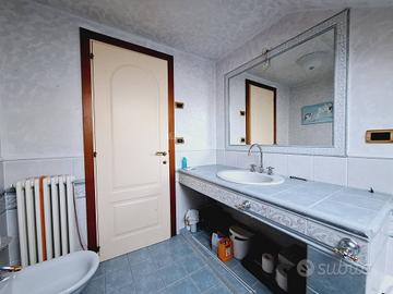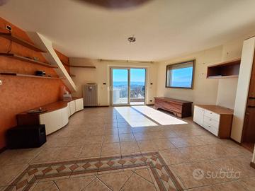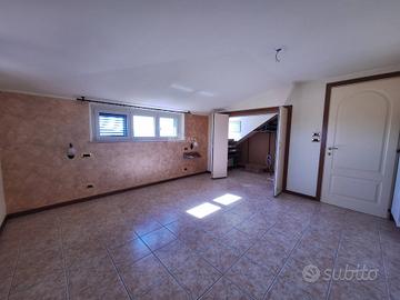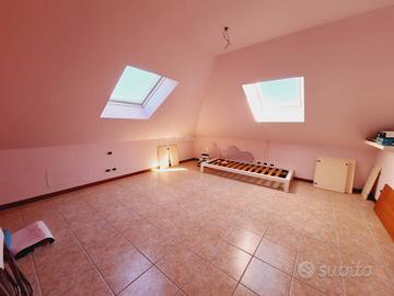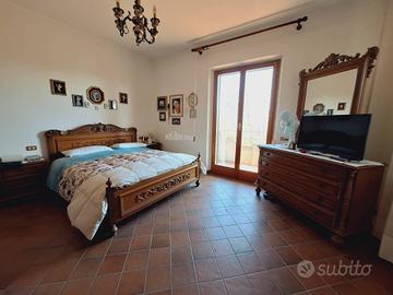 piano seminterrato, di mq 65 composta da cantina con camino;piano terra, di mq 120 composta da garage idoneo a rimessa grandi mezzi, con altezza di 4mt;piano primo di mq 120: ingresso su ampio soggiorno con camino, cucina abitabile ed angolo cottura, tre camere da letto matrimoniali, due bagni, e ripostiglio, ampi balconi su tutti i localiPiano sottotetto di mq 120; allestito come appartamento, con altezza massima 2,30 mt ed altezza minima 0,80 mt, composto da ampio salone con terrazzo panoramico lato sud, cucina abitabile, due ampie camere matrimoniale, uno studio/ripostiglio/cameretta, due bagni finestrati con vasca e doccia.