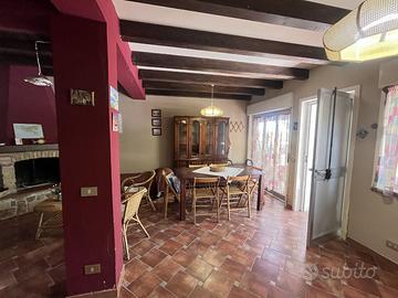 L'atmosfera calda è esaltata dalla presenza del camino, vero cuore pulsante della zona giorno, e dalla pavimentazione in cotto e gres porcellanato, che restituisce un sapore rustico e autentico senza rinunciare alla praticità.