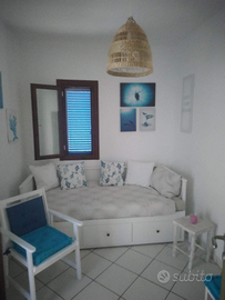 La casa arredata in stile mediterraneo è composta da 2 camere da letto, un bagno, e da ampia zona living e cucìna, entrambe con esposizione sul patio, finemente arredato. Sono presenti smart tv, clima, zanzariere e lavatrice.