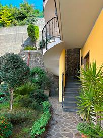 Casa cielo terra libera su tre lati posta su tre livelli così strutturata: al piano terra rialzato ampio trilocale composto da soggiorno cucina, dismpegno, porticato, bagno, due camere e ampio terrazzo solarium. Al piano primo ampio trilocale recentemente ristrutturato con ampio soggiorno-cucina disimpegno, bagno con vasca e doccia, due camere, ripostiglio, ampio terrazzo su tre lati, al piano secondo sottotetto con possibilità di creare ulteriore unità abitativa, inoltre al piano strada interrato ampio box di circa 60 mq, da vedere! C.E.F. 163,81 kWh/m2a