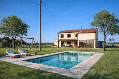 Casale di campagna in zona tranquilla, ma comoda per raggiungere i principali centri della zona, da Legnago a Montagnana, con 1200 mq di scoperto di proprietà ed annessi vari, sia per ricovero attrezzi che da destinare a doppio garage (annesso catastalmente a due piani). L'immobile lo avevamo acquistato con il sogno di ristrutturarlo, ma per sopraggiunti motivi economici i lavori non sono mai partiti. L'immobile è TOTALMENTE da ristrutturare. I muri interni del piano terra sono stati portati al grezzo, così come le travi sono state portate a vista. Le camere al piano primo sono "datate", ed è stato ispezionato lo stato del soffitto, come da foto, ma questi sono aspetti tecnici. La copertura dell'edificio è in buono stato e lo spazio indicato come granaio si trova nella condizione originaria. Lo spazio destinato a ripostiglio di mq 33.55, ovvero "barchessa chiusa", presenta un enorme camino da riportare in funzione, ora murato, come da foto. Parliamo di un immobile che è pronto ad essere trasformato in una Villa, con ampio giardino, doppio garage e ricovero attrezzi, .... magari con piscina. E' presente un pozzo, attualmente chiuso per ragioni di sicurezza, e l'approvvigionamento del gas è tramite bombolone, installato nuovo nel 2024, ma da allacciare. Occasione da non perdere in quanto gli spazi sono veramente generosi. Il prezzo è stato ribassato ed è ancora un po' trattabile, perché ci spiace non vederlo splendere come volevamo. E' ideale per una grande famiglia o per una vita nella tranquillità della campagna veneta. Vendita no tramite agenzia. Il tecnico, a cui ci siamo appoggiati per abbozzare la ristrutturazione, geom. Foscarin di Montagnana, potrà illustrarvi ogni aspetto tecnico, per avere maggiormente idea dell'opportunità. Siccome le foto possono non rendere l'idea vi invito a fare una visita sul posto prima di decidere, e immaginare l'immobile come ce lo siamo immaginati anche noi (esempio foto ricostruzioni). Mirko
