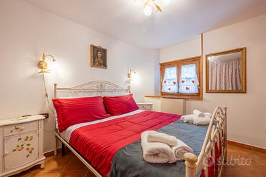 Affitto casa con giardino, finemente arredata, situata in Marsia, una delle più grandi faggete d'Europa, composta da salone con angolo cottura, camera da letto e bagno con posto auto interno.