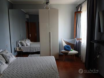 Dalla scala nel salotto si sale alla zona notte composta da due camere da letto matrimoniali ampie con bagni privati e uno studio usato come cabina armadio, giardino 200 m2.