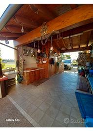 La spaziosa veranda esterna permette di parcheggiare fino a quattro vetture, un dettaglio fondamentale per chi ha più mezzi o desidera un ampio spazio di ricovero.