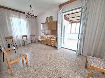 Al piano primo, di 80 mq, si accede tramite scala esterna, composta da disimpegno, cucina abitabile con camino, soggiorno, due camere da letto matrimoniali, un bagno, con finestra, un terrazzo con veranda.