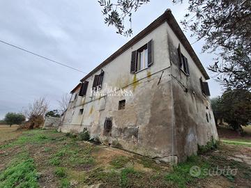 Il casolare, si sviluppa su due piani, al piano terra, di 80 mq, composto da locale stalla h 2.35, magazzino h 2.65, altro magazzino h 1,75, ripostiglio 2,40 m, e forno.