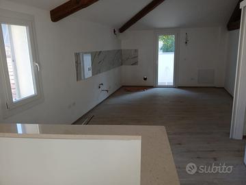 1° PIANO: mansardato con travi a vista, cucina/ pranzo openspace con accesso al balcone, 2 letto ( 1 matrimoniale, 1 doppia con ripostiglio, bagno/d. Corte comune.