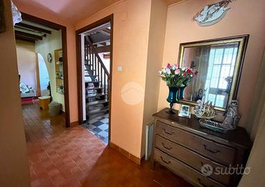 L'immobile è suddiviso su quattro livelli, al piano primo, accessibile da scala esterna, ingresso, soggiorno, cucina abitabile, una camera matrimoniale con balcone, un bagno con vasca ed un ripostiglio. Tramite la scala interna si accede al secondo piano, così composto: tra camere da letto, un salottino, un bagno, due disimpegni, un ripostiglio e tre balconi.