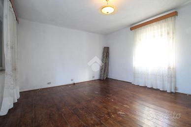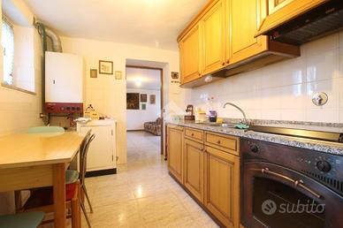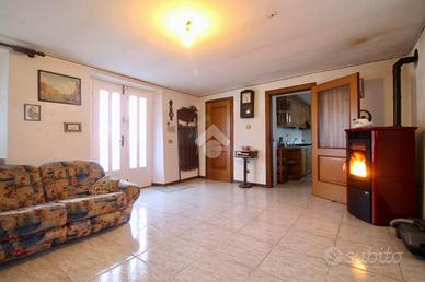 Al piano terra, entrando dalla porta principale, si accede al soggiorno con stufa a pellet, reso molto luminoso da due finestre su entrambe le facciate, collegato ad esso un bagno finestrato con vasca.