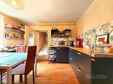 Il primo immobile si sviluppa interamente al piano terra ed è stato recentemente ristrutturato e arredato. Superata l'androna e varcato il portoncino d'ingresso, si viene accolti da un'ampia zona giorno open space con cucina a vista, luminosa e funzionale, che crea un ambiente caldo e accogliente. Da qui si accede alla camera matrimoniale e al bagno finestrato con doccia. L'appartamento è termoautonomo e pronto per essere abitato fin da subito, ideale per chi cerca una soluzione immediatamente fruibile e senza interventi da fare.