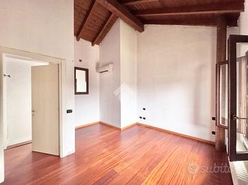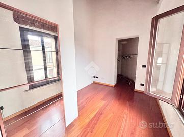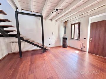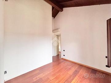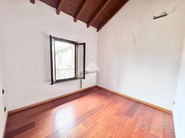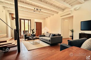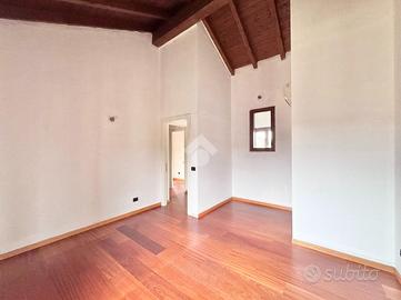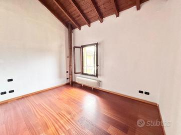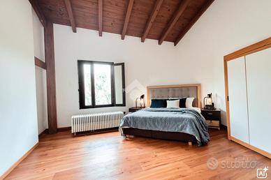 Una scala conduce al primo piano, interamente dedicato alla zona notte, dove il calore del parquet crea un'atmosfera avvolgente e raffinata. Anche qui, le travi a vista continuano ad essere un elemento di pregio, conferendo un tocco di autenticità.