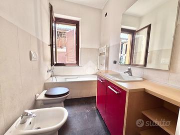 Il piano terra è completato da un bagno finestrato dotato di vasca, ideale per concedersi momenti di relax, e da un pratico ripostiglio.