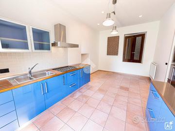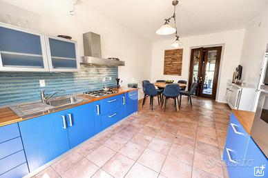 Varcata la soglia protetta da una porta blindata, si viene accolti da un caldo e accogliente soggiorno, dove lo sguardo è subito catturato dalle suggestive travi a vista che impreziosiscono l'ambiente. Un elemento distintivo di questo spazio è la presenza di una stufa a legna, completa di canna fumaria, pronta a diffondere un piacevole calore nelle serate più fresche e a creare un'atmosfera intima e rilassante. Adiacente al soggiorno, si apre una cucina abitabile di generose dimensioni, pensata per chi ama vivere la convivialità e avere spazio a disposizione per esprimere la propria passione culinaria.