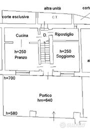 Al piano terra l'abitazione accoglie con un ampio portico d'ingresso, perfetto per momenti di relax all'aperto. Internamente troviamo cucina separata dal soggiorno luminoso, ambienti ben distinti e funzionali, serviti da un bagno/lavanderia.