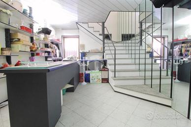 Al piano terreno è presente un locale unico attualmente organizzato con un' intera parete espositiva ed un bancone.