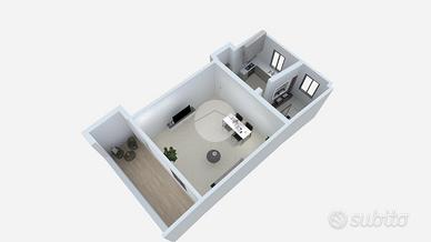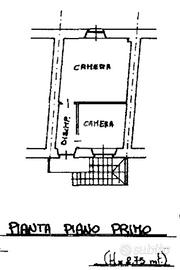 L'immobile presenta al piano terra l'ingresso sul luminoso soggiorno, cucina abitabile e bagno finestrato dotato sia di vasca che di box doccia. Tramite scala esterna si accede al primo piano composto dal disimpegno con sfogo sul balcone e due ampie camere.