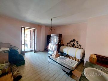 La proprietà al piano terra ha il soggiorno con angolo cottura con soffitti con volte e il ripostiglio, una scala in muratura porta al piano primo dove troviamo la camera da letto matrimoniale con affaccio sul balcone e il bagno con la doccia. Il riscaldamento autonomo con stufa a legna ma è possibile mettere una stufa a pellet, mentre per quanto riguarda la cucina, si utilizza la bombola a gas o eventualmente la piastra a induzione. Completa la proprietà il box auto singolo privato con sottotetto uso deposito.