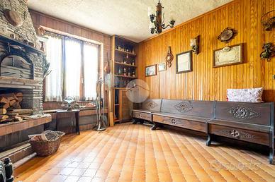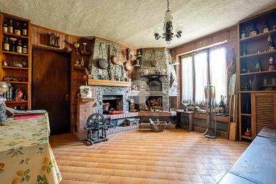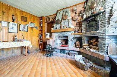La proprietà si presenta al PT con ingresso, camera, cucina e bagno. Completa la zona abitativa una tavernetta con camino e forno. Vi è inoltre l'accesso al locale caldaia e cantina. Passando dalla tavernetta si accede al garage doppio (con portone di accesso dall'esterno) e a seguire un ampio locale adibito a laboratorio.