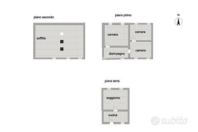 Per entrambi le soluzioni al piano secondo troviamo ampia soffitta utilizzabile come deposito.