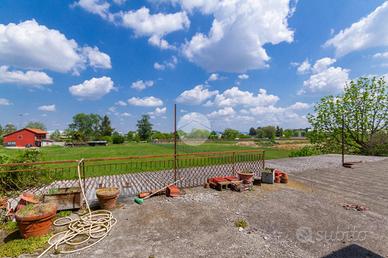 La porzione di cascinale sorge nelle immediate vicinanze della strada provinciale che conduce da Caselle a San Maurizio Canavese nei pressi dell'aeroporto. La soluzione proposta è stata edificata nel 1960 e fa parte di un cascinale composto da due unità abitative in stato originario, ognuna delle quali viene venduta singolarmente con il proprio terreno di proprietà. Questa porzione di casa comprende l'unità abitativa angolare con un corpo annesso ad uso magazzino/laboratorio di 300 mq (spazio ideale per più settori merceologici) e l'unità abitativa centrale. La zona giorno, in entrambe le porzioni, è situata al piano terra ed è in grado di contenere un salone con cucina a vista ed un bagno. Una comoda scala in pietra collega il piano terra al primo piano, dove le due ampie camere da letto godono della vista panoramica grazie all' accesso diretto al terrazzo di 300 mq. La soluzione più piccola, invece, nella zona notte ospita una solo camera da letto ed il bagno finestrato. La generosa metratura consente di poter sfruttare al meglio queste due soluzioni, ricreando un'unica grande villa indipendente sui tre lati, oppure una bifamiliare sviluppata in orizzontale. Le planimetrie proposte sono a scopo esemplificativo di come effettuando una ristrutturazione dell'immobile si potrebbero suddividere gli ambienti. L'immobile viene completato da un box auto e da un giardino/cortile di circa 1200 mq ad uso esclusivo. L'abitazione, immersa nel verde, è la soluzione ideale per chi vuole allontanarsi dal caos cittadino altresì comoda alla stazione dell'aeroporto.