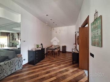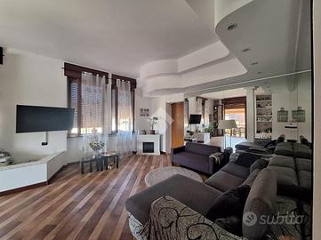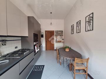 L'ingresso è nell'ampio e moderno soggiorno luminoso, grazie alla doppia esposizione e all'affaccio su terrazzino sfruttabile, ideale per momenti di relax all'aperto, la cucina è abitabile.