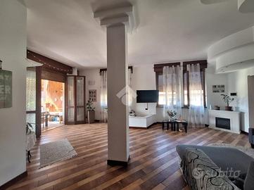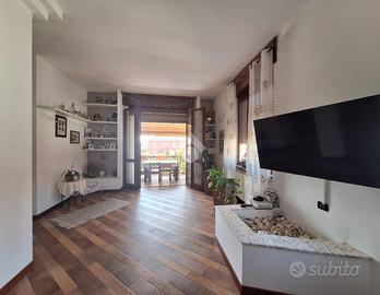Il portoncino di ingresso nel vano scala e la porta d'ingresso sono entrambi blindati, i serramenti sono in legno con doppio vetro, le tapparelle sono elettriche in camera matrimoniale e in cucina, le pavimentazioni sono in parquet nelle camere e nel bagno padronale mentre nella zona giorno è in ceramica.