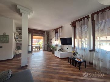 Il portoncino di ingresso nel vano scala e la porta d'ingresso sono entrambi blindati, i serramenti sono in legno con doppio vetro, le tapparelle sono elettriche in camera matrimoniale e in cucina, le pavimentazioni sono in parquet nelle camere e nel bagno padronale mentre nella zona giorno è in ceramica.