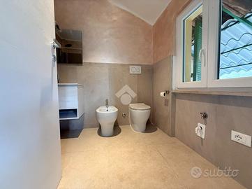 Il piano primo si compone di un bagno dotato di doccia e di un disimpegno che permette l'accesso alle due camere da letto.