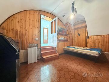 L'ingresso affaccia sulla cucina che ospita la zona giorno e collega a sua volta un locale adibito a tavernetta.