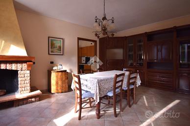 La casa si apre su un lungo e luminoso corridoio centrale che ci permette di accedere alle varie aree dell'abitazione; sulla sinistra troviamo la zona giorno composta da soggiorno con camino e cucina separata ma abitabile. Sul lato destro del corridoio troviamo una prima stanza, ideale per ricrearci un ulteriore zona relax, e subito dopo la scala per accedere al primo piano.