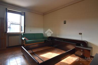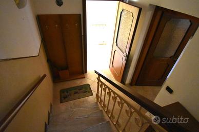 Salendo dalla scala che collega il piano terra con il primo piano, ci troviamo davanti ad un lungo corridoio centrale che ci permette di accedere alle 4 camere matrimoniali della casa e ai 2 bagni dell'immobile, il primo dotato di vasca e il secondo di box doccia.