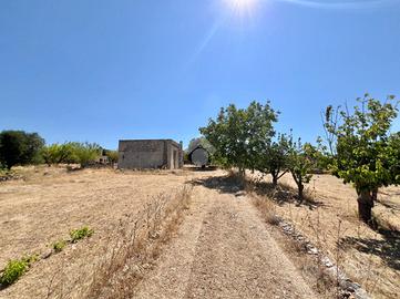In direzione Martina Franca, a 9 km da Ceglie Messapica, vi proponiamo una doppia lamia con terreno seminativo di 10.122mq.