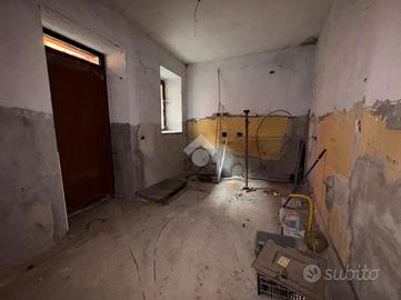 Questa soluzione, in parte abitabile ed in parte da ultimare, presenta un ingresso nel piano terreno dove è stata iniziata, ma non ultimata,m una ristrutturazione. Sono stati predisposti gli impianti e l'ultimazione dei lavori prevedeva un'ampio soggiorno, una cucina abitabile ed un bagno con vasca.