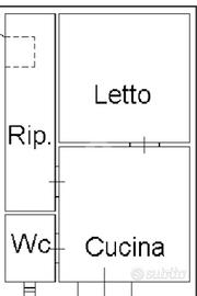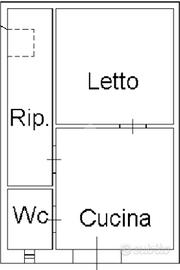 L'immobile, suddiviso tra piano terra e primo piano, è composto da due locali: a pian terreno troviamo la zona giorno con ampia cucina soggiorno in ambiente unico e bagno e tramite la scala interna si accede alla camera da letto con accesso sulla terrazza di pertinenza.