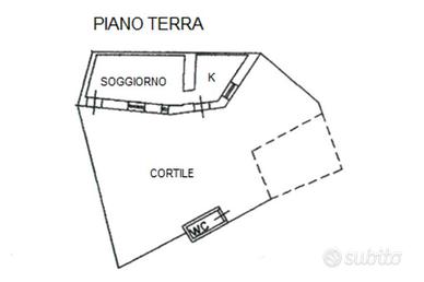 Al piano terra troviamo due locali dove poter creare un soggiorno e una cucina abitabile. Le scale esterne conducono al piano superiore dove abbiamo una camera da letto e due grandi ripostigli. Ultimo piano con locale di sgombero e altro ripostiglio.