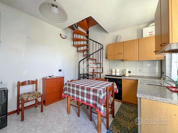 L'ingresso avviene nella zona giorno con cucina a vista, tramite scala a chiocciola si arriva alla camera da letto con bagno.