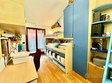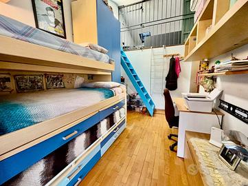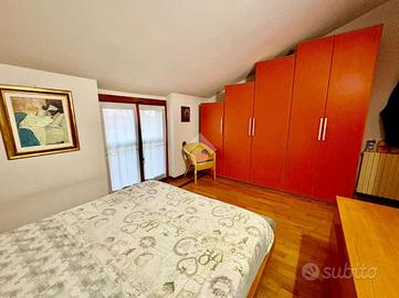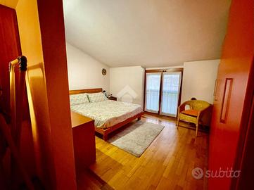 Al piano secondo abbiamo invece la zona notte con due camere da letto, la prima matrimoniale con annesso un ripostiglio e la seconda doppia, servita da un soppalco interno, ideale per ricreare un angolo studio o una cabina aramdio, da questa stanza è possibile accedere ad un balcone coperto che si affaccia sull'ingresso principale. Completa la zona un bagno con box doccia.