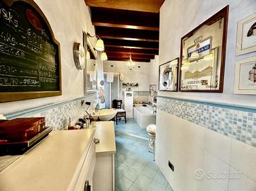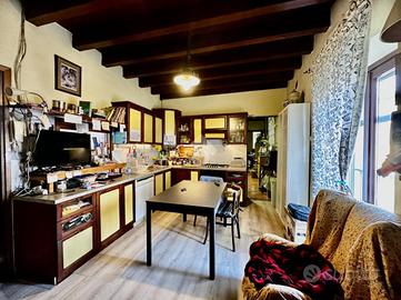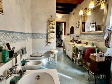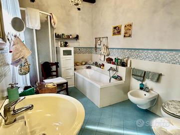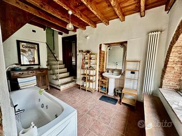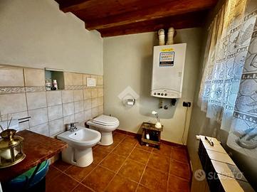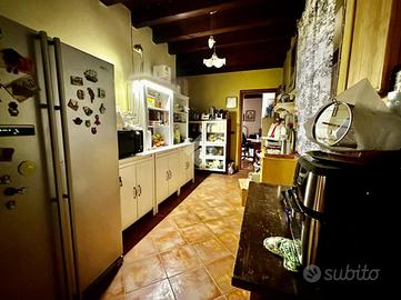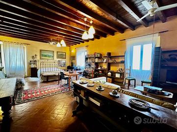 Il lato prospettante sulla strada veniva occupato da un portico interno formato da tre ariose campate coperte ognuna da una volta in mattoni sapientemente posati a padiglione dove, in corrispondenza della campata centrale, si apriva l'ampio ingresso carrale. Il corpo adiacente verso monte, quello più antico, veniva prolungato per realizzare una nuova scala, alcuni piccoli locali e una torretta, forse inizialmente adibita a torre colombaia; sulla sua facciata verso il cortile, si apre un porticato trabeato a quattro campate su colonne toscane e lesene alle estremità, rialzato di due gradini. Una fotografia degli anni cinquanta del secolo scorso documenta che, sull'ordinato disegno degli esterni, sporgevano le cornici sagomate delle finestre. Il fronte intonacato esprimeva, nella sua composizione architettonica neoclassica, quei criteri di simmetria, di regolarità di volume e di lu