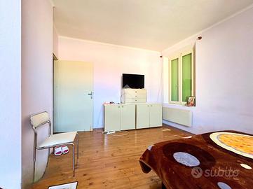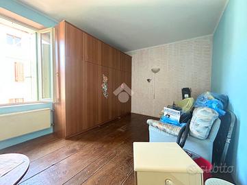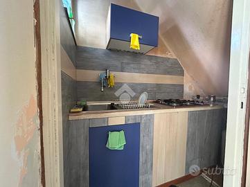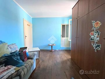 L'accesso avviene tramite un passaggio in comune, conducendo direttamente all'interno dell'abitazione. Il piano terra si compone di una stanza adiacente a un ambiente che, in origine, avrebbe dovuto servire da ingresso principale.