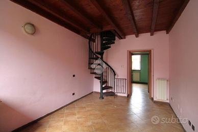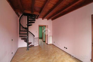 L'appartamento, si sviluppa su due livelli, l'ingresso è nel soggiorno con angolo cottura, camera matrimoniale, bagno con doccia; tramite la scala a chiocciola si raggiunge il piano secondo dove troviamo un ambiente open space mansardato ad uso ripostiglio.