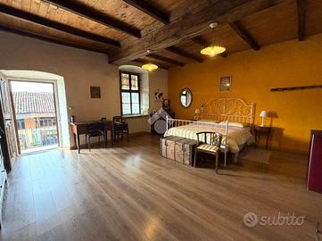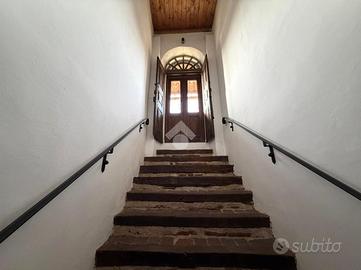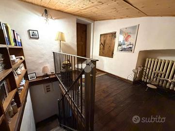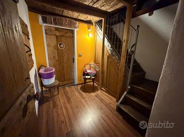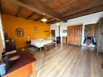 L'abitazione si sviluppa su due livelli. Al piano terra l'ingresso conduce a un disimpegno che collega la cucina abitabile, mentre un secondo disimpegno accompagna al soggiorno, ambiente accogliente impreziosito da un maestoso caminetto e da pietre a vista che ne esaltano il carattere rustico. Sempre sullo stesso livello sono presenti due bagni: uno di servizio e un secondo bagno di dimensioni più ampie.