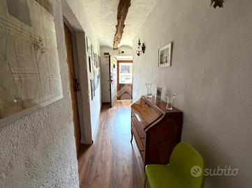 La proprietà è stata oggetto di un attento intervento di restauro circa dieci anni fa, volto a valorizzare e conservare i materiali originali e gli elementi storici della casa. I dettagli in legno, gli antichi chiavistelli e i davanzali in pietra contribuiscono a mantenere intatto il carattere autentico dell'immobile. Anche la copertura è stata curata nei dettagli: il tetto è coibentato e presenta copertura in marsigliese e coppi.