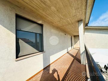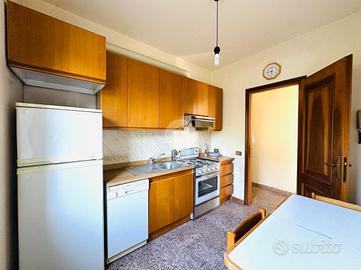 L'ingresso è dal ballatoio comune con il vicino ed accede al disimpegno armadiabile che collega l'ampio soggiorno, ben illuminato e spazioso, alla cucina abitabile ed alla sala da pranzo.
