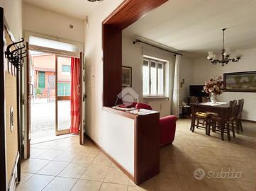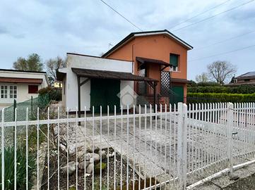 Casa indipendente su due livelli, libera su due lati, composta da 5 locali.L'immobile offre spazi ampi e ben distribuiti, ideali per una famiglia.Al piano terra si sviluppa la zona giorno con soggiorno luminoso, cucina abitabile, sala da pranzo e bagno.Al piano superiore troviamo la zona notte composta da due camere matrimoniali, una camera singola e un secondo bagno.La proprietà è completata da un comodo garage situato nella corte privata.Sul retro dell'abitazione è presente anche una corte comune.Soluzione indipendente, funzionale e pronta da vivere. Contattaci per maggiori dettagli o per organizzare una visita. /