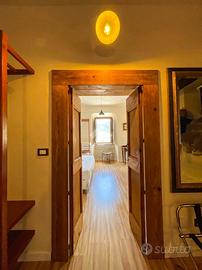 Il secondo piano è dedicato alla zona notte, composta da due camere comunicanti e un ulteriore bagno. Gli interni sono caratterizzati da finiture che rispettano e valorizzano l'anima autentica della casa: travi in legno a vista, pavimenti in cotto, pareti in pietra e infissi restaurati mantenendo lo stile originario. Nelle camere è presente un parquet laminato, facilmente sostituibile secondo i propri gusti.