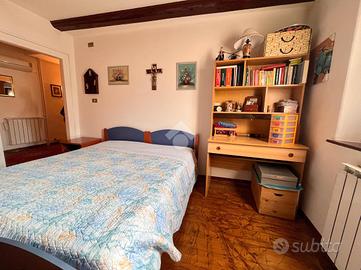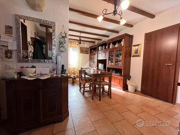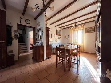 L'abitazione si sviluppa su più livelli abitativi: al piano terra si trova la zona giorno, composta da cucina e soggiorno separati, oltre a un comodo ripostiglio. Una scala interna conduce al piano superiore, dedicato alla zona notte, che comprende due ampie camere da letto matrimoniali e un bagno finestrato con vasca.