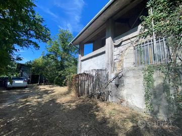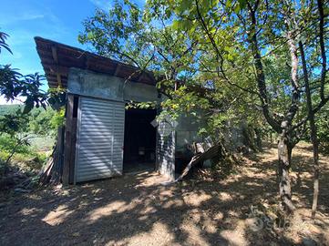Sovrastante il terreno, adiacente alla casa, oltre che ad una quercia secolare, c'è una rimessa di 70mq ca. con tetto in legno lamellare, rifatto in seguito alla nevicata del 2012.