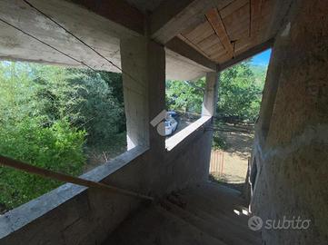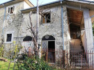 Il casale, con tetto rifatto a seguito del terremoto del 1985, si sviluppa su 2 livelli ed è composto da: P.T.: n°2 cantine di cui una con soffitto a volta, bagno e rimessa con scaletta a chiocciola per accedere al piano superiore; P.1°(con scala esterna): Portico, cucina con camino, sala, camera con cabina armadio e bagno.